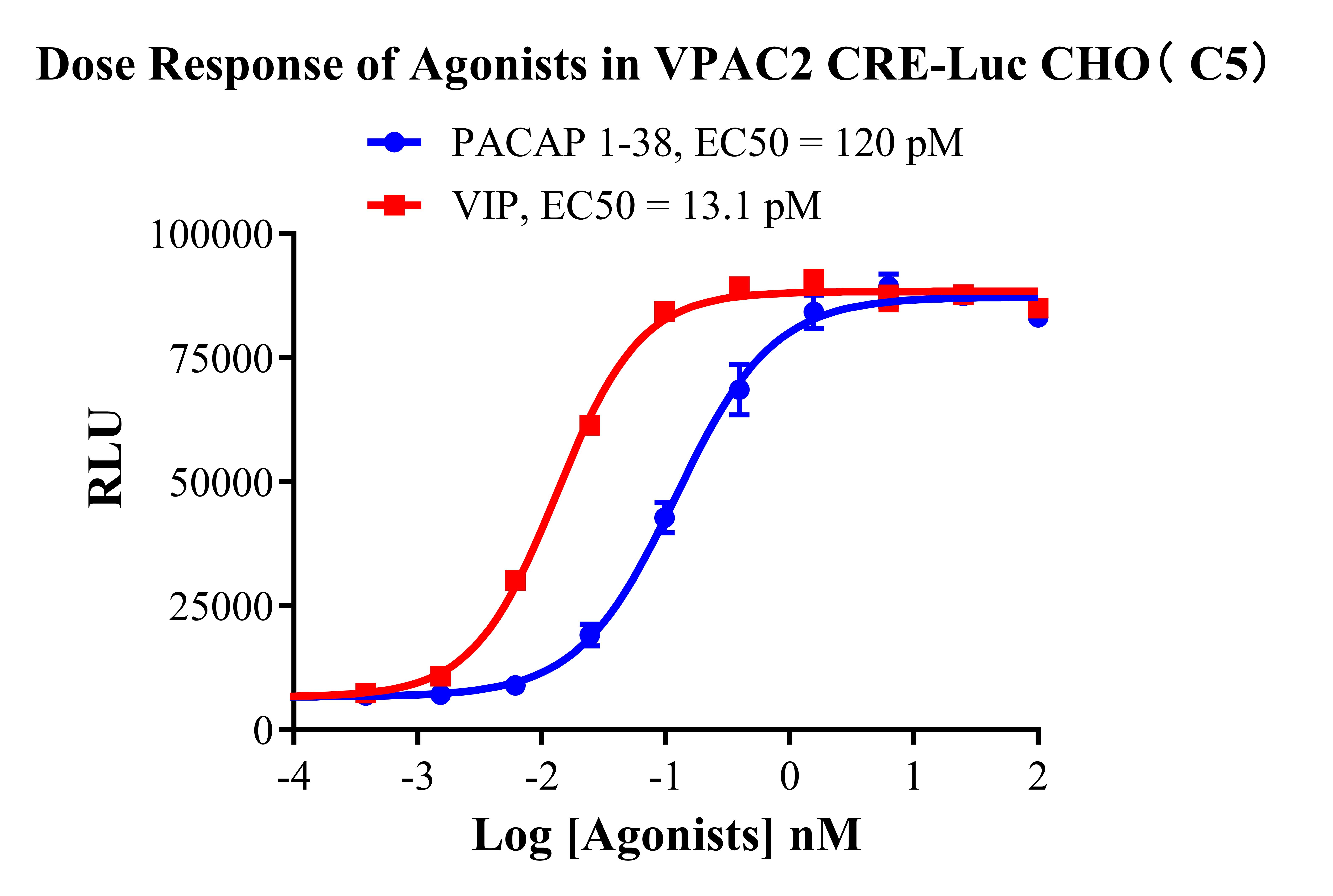 VPAC2 CRE-Luc CHO 報告基因藥靶模型很好的模擬了體內 VPAC2 的信號轉導過(guò)程, 原理見(jiàn)下圖所示。![]() Figure 1. VPAC2 CRE-Luc CHO 細胞模型原理圖 |