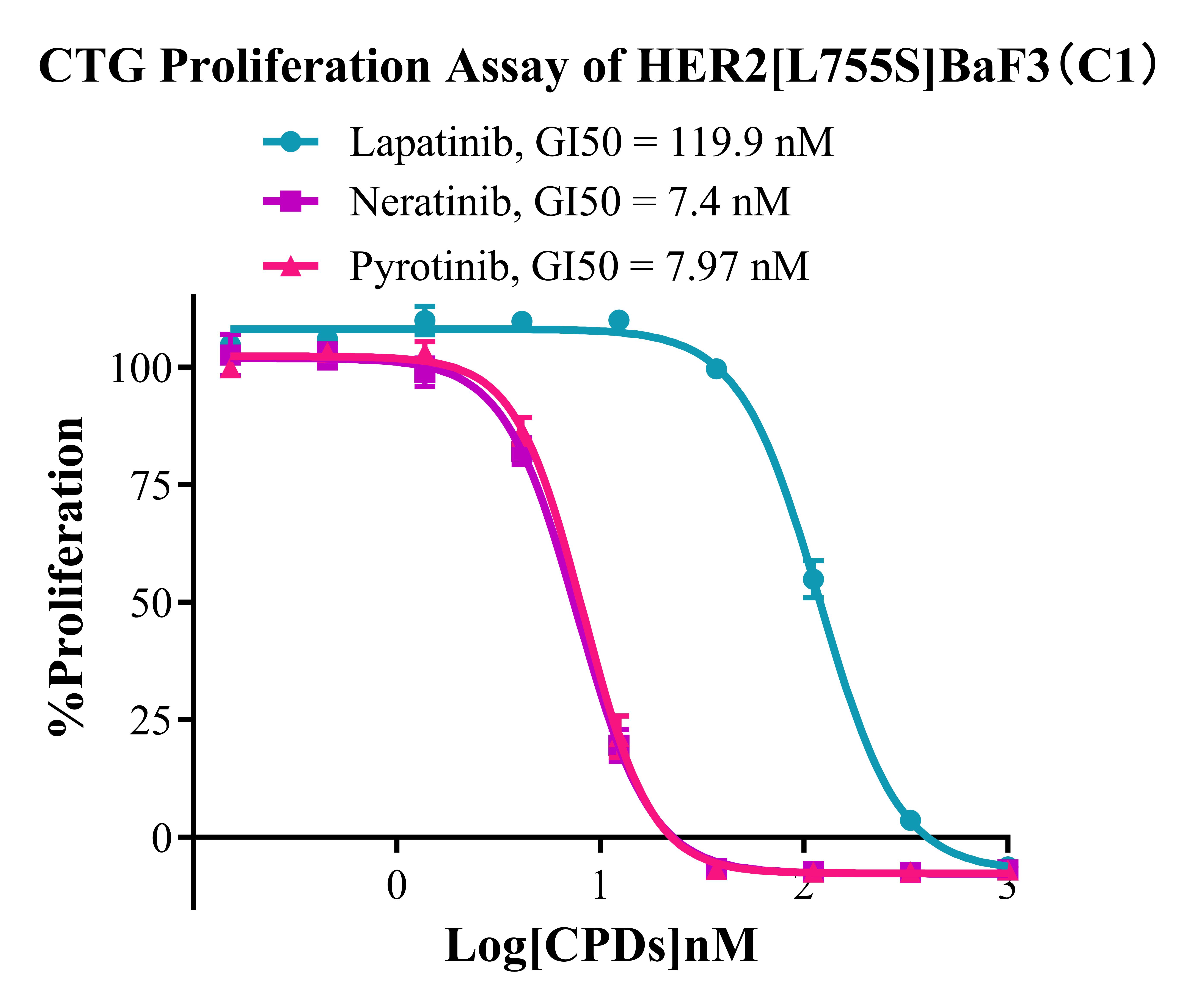 Figure 3. CTG Proliferation Assay of Her2 [L755S] BaF3 (C1). |