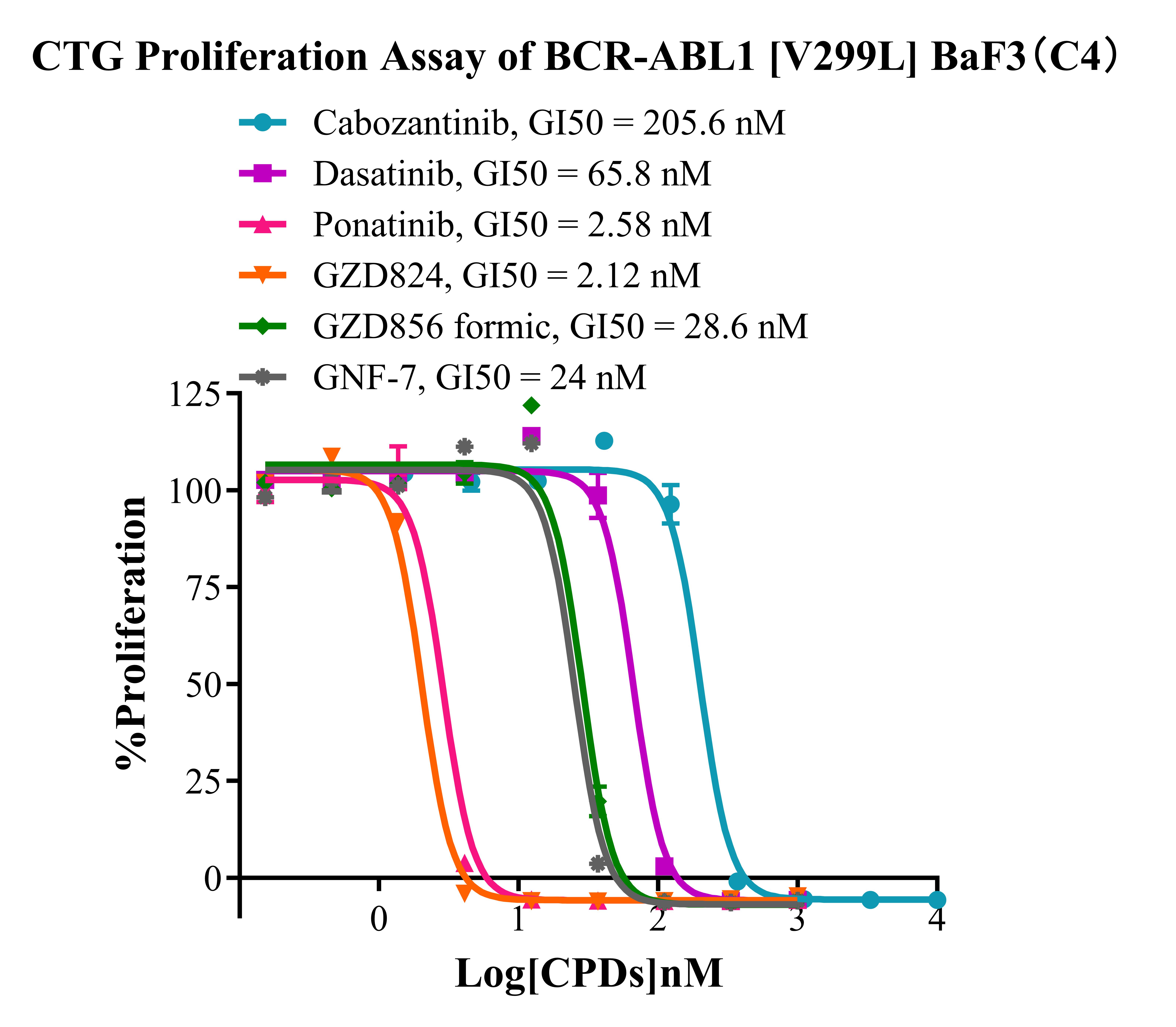 Figure 5. CTG Proliferation Assay of BCR-ABL1 [V299L] BaF3 (C4). |