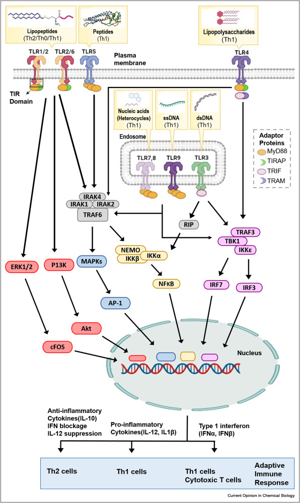 每個(gè) TLR 都有自己特定的組織定位和下游基因信號通路,數百種靶向各種 TLR 的配體已被鑒定并表征為疫苗佐劑,這為研究人員提供了精確定制具有特定免疫作用的佐劑的機會(huì )。