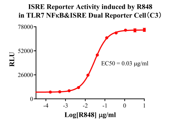 Figure 7.NFκB Reporter Activity induced by R848 in TLR7 NFκB&ISRE Dual Reporter Cell(C3).