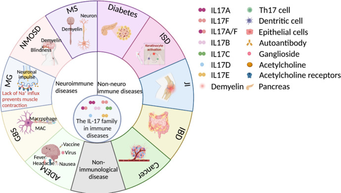 IL-17 細胞因子參與多種免疫調節,對自身免疫性疾病及免疫相關(guān)疾?。ㄈ缍喟l(fā)性硬化癥、視神經(jīng)脊髓炎譜系疾病、重癥肌無(wú)力、吉蘭-巴雷綜合征和急性播散性腦脊髓炎)以及非神經(jīng)免疫性疾病中的炎癥和病理過(guò)程產(chǎn)生影響。