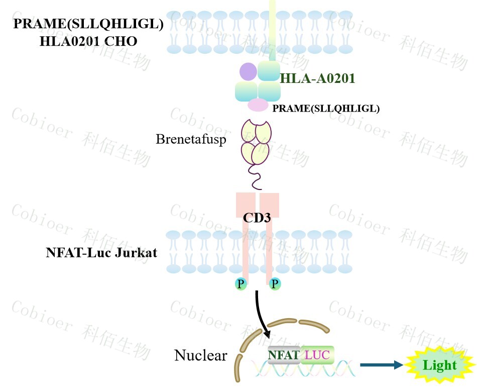 HLA-A*0201-PRAME 復合物是人類(lèi)白細胞抗原(HLA)Ⅰ類(lèi)分子與 PRAME 抗原肽的復合體,屬于主要組織相容性復合體(MHC)Ⅰ類(lèi)家族成員。該復合物常用于 T 細胞受體 (TCR)療法,通過(guò)激活 T 細胞以識別并殺傷腫瘤細胞,原理見(jiàn)下圖所示。