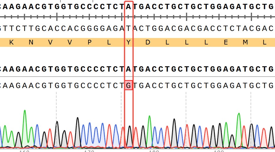 ESR1[Y537C](Homozygous,AF%:100) Isogenic MCF7 藥靶細胞,通過(guò)基因編輯的方式將 ESR1 的 537 位氨基酸酪氨酸(Y)突變?yōu)榘腚装彼幔–)。![]() Figure 1. ESR1[Y537C](Homozygous,AF%:100) Isogenic MCF7 原理示意圖 |