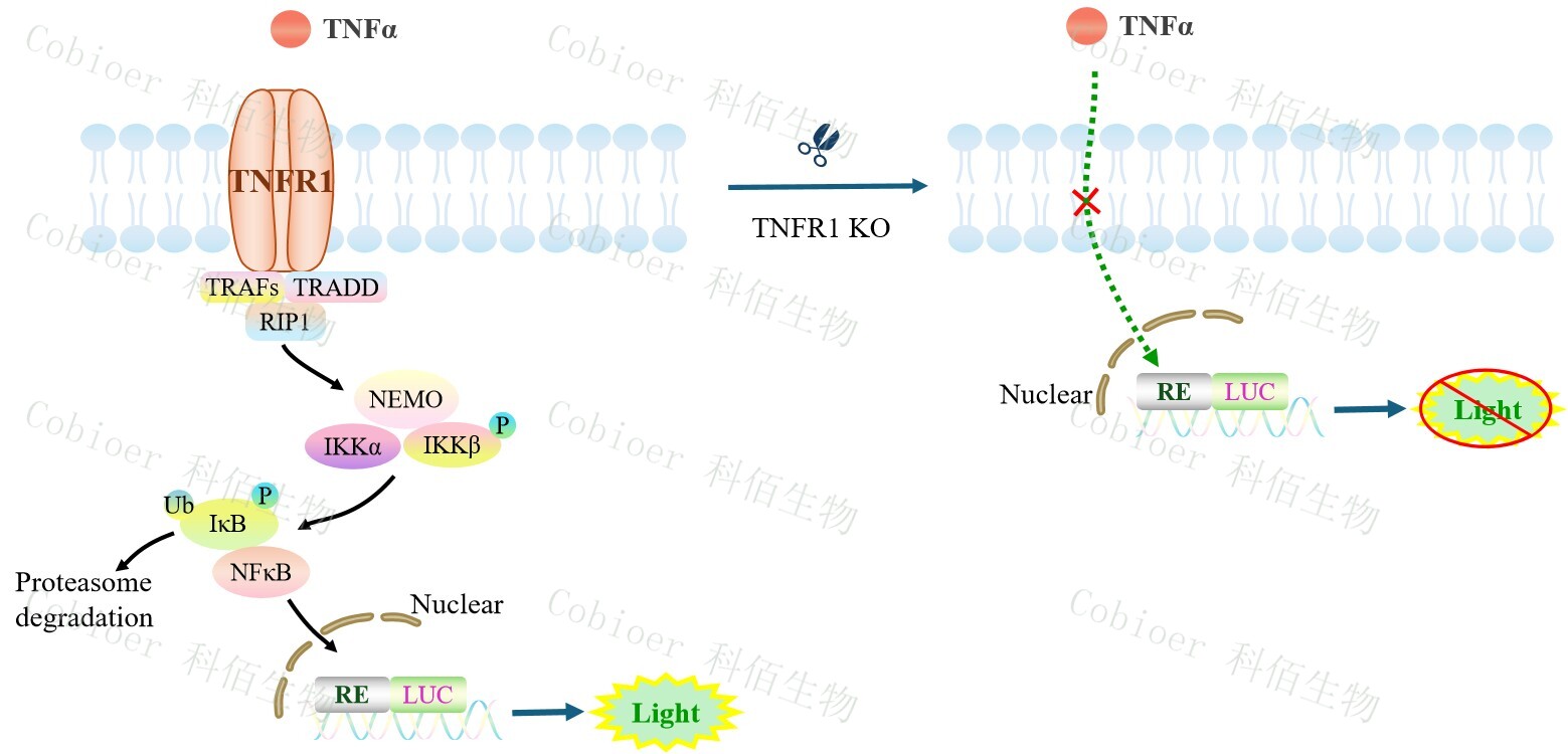 TNFR1 KO NFκB-Luc Jurkat 報告基因藥靶模型很好的模擬了體內 NFκB 的信號轉導過(guò)程,原理見(jiàn)下圖所示。![]() Figure 1. TNFR1 KO NFκB-Luc Jurkat 細胞模型原理圖 |