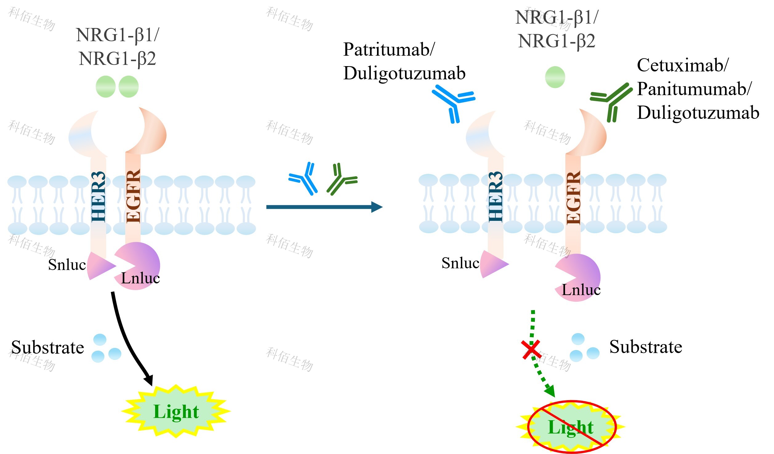 EGFR&ERBB3 Dimerization CHO 報告基因藥靶模型很好的模擬了體內(nèi) EGFR&ERBB3 的信號轉(zhuǎn)導(dǎo)過程,原理見下圖所示。![]() Figure 1. EGFR&ERBB3 Dimerization CHO 細(xì)胞模型原理圖 |