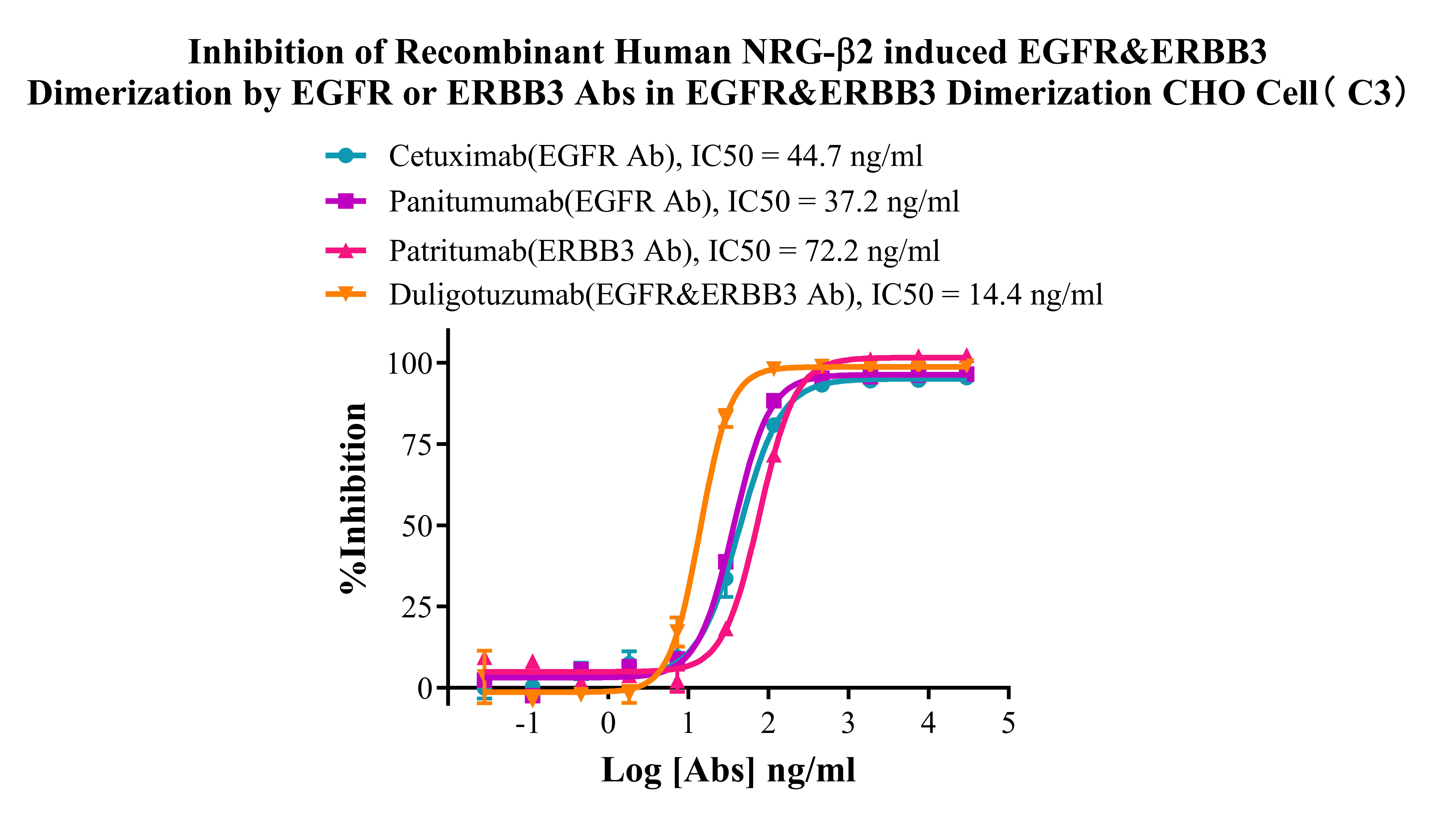 ![]() Figure 4. Inhibition of Recombinant Human NRG-β1 induced EGFR&ERBB3 Dimerization by EGFR or ERBB3 Abs in EGFR&ERBB3 Dimerization CHO Cell(C3). ![]() |