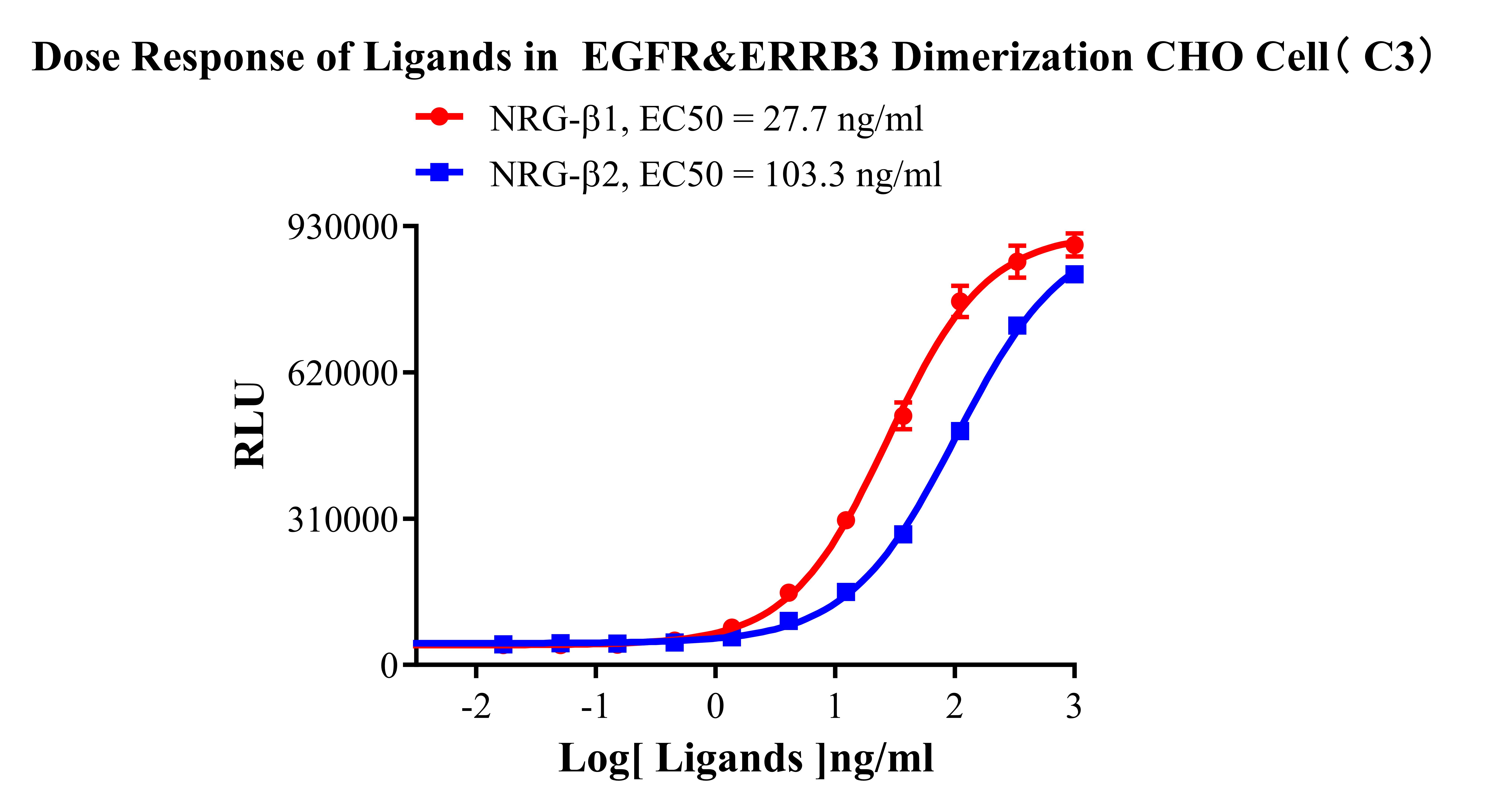 ![]() Figure 2. Recombinant EGFR&ERBB3 Dimerization CHO stably expressing EGFR&ERBB3. ![]() Figure 3. Dose Response of Ligands in EGFR&ERRB3 Dimerization CHO Cell( C3).
