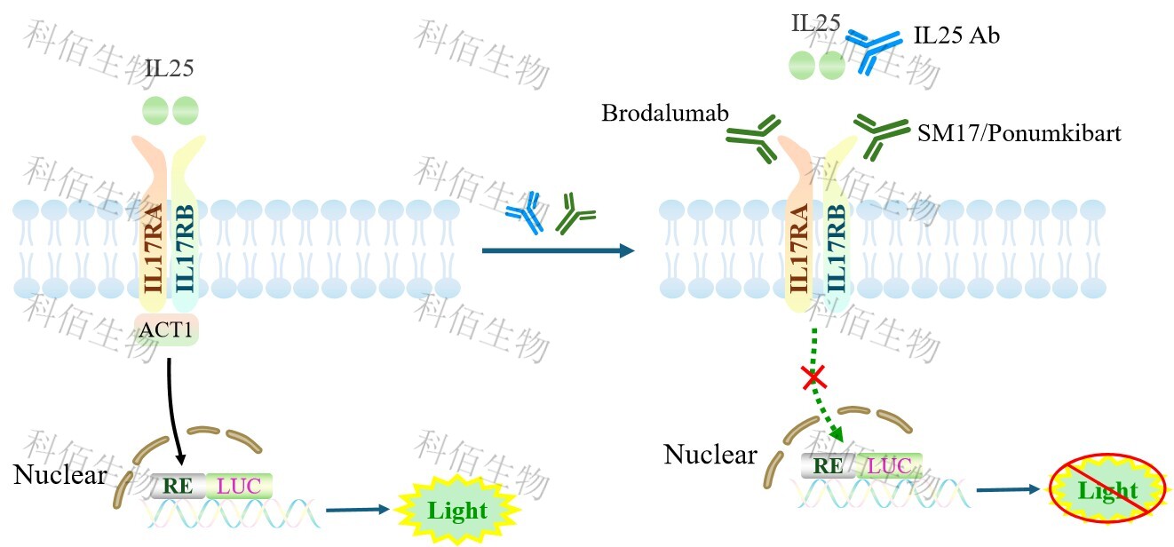IL25 Effector Reporter Cell(Adherent)報告基因藥靶模型很好的模擬了體內 IL25 的信號轉導過(guò)程,原理見(jiàn)下圖所示。![]() Figure 1. IL25 Effector Reporter Cell(Adherent)細胞模型原理圖 |