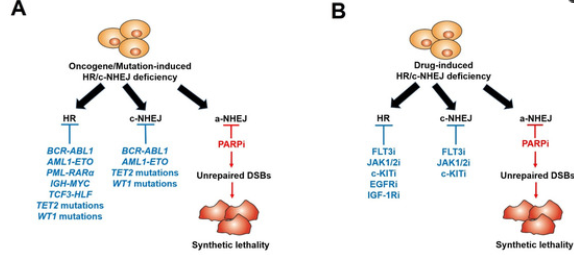 “合成致死”是指兩個(gè)非致死基因同時(shí)被抑制,導致細胞死亡的現象。當兩個(gè)基因同時(shí)失活導致細胞死亡,但任一基因中的單獨失活都是無(wú)明顯毒性。在發(fā)生突變失活的腫瘤中,通過(guò)抑制其合成致死配對基因,可獲得腫瘤選擇性殺死。